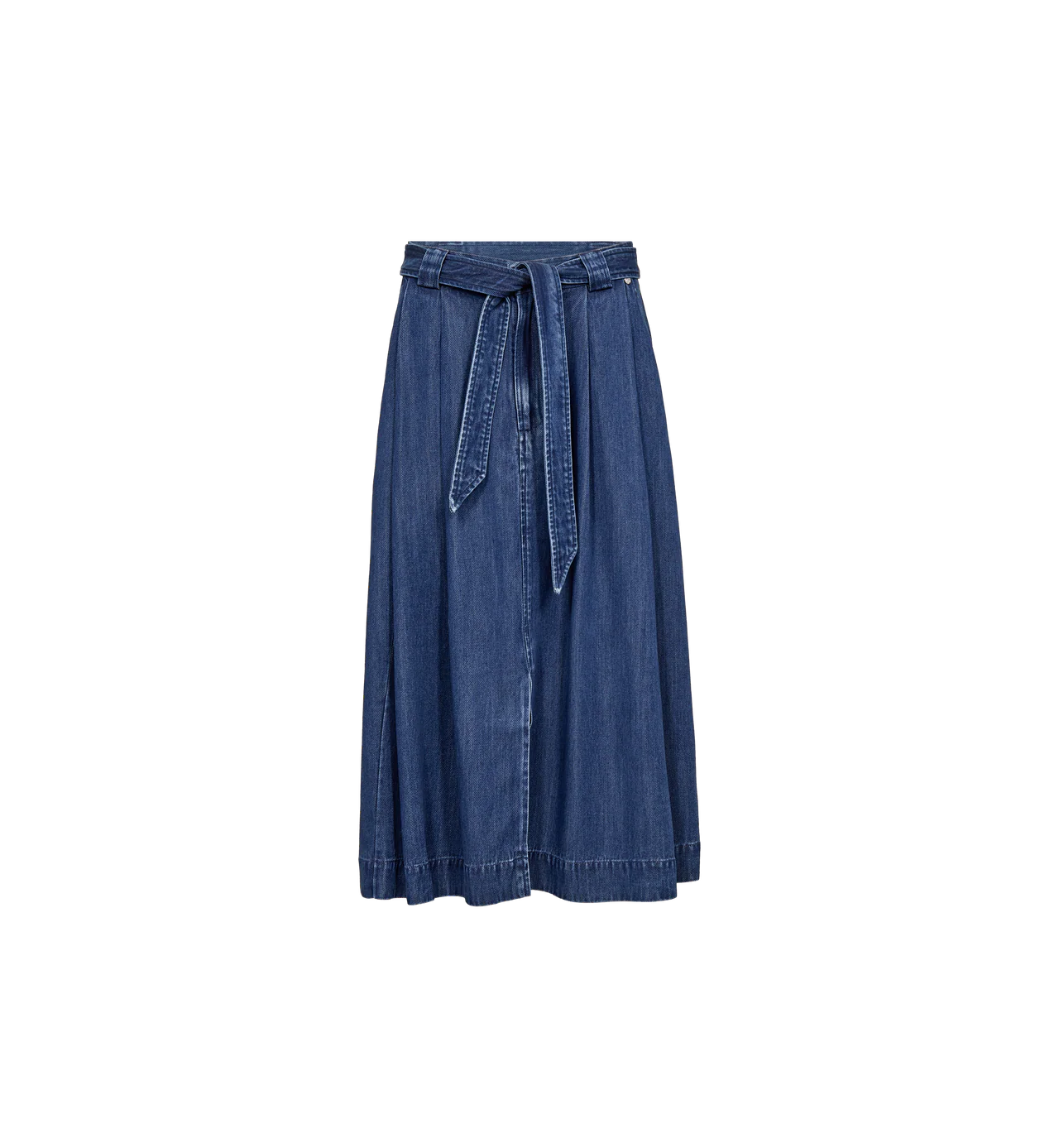 Elevate your everyday wardrobe with the Mos Mosh Koda Denim Skirt in Dark Blue—a versatile piece that seamlessly blends classic style with modern sophistication. This beautifully crafted skirt features a graceful A-line silhouette and luxuriously soft, drapey fabric that moves with you throughout the day. The flattering mid-length cut pairs perfectly with the included matching belt, which cinches your waist for a polished silhouette. A front button closure delivers that coveted casual-chic appeal, making it effortlessly easy to dress up or down. Whether paired with a crisp button-down for the office or a relaxed tee for weekend adventures, this timeless denim-inspired essential deserves a permanent place in your closet.