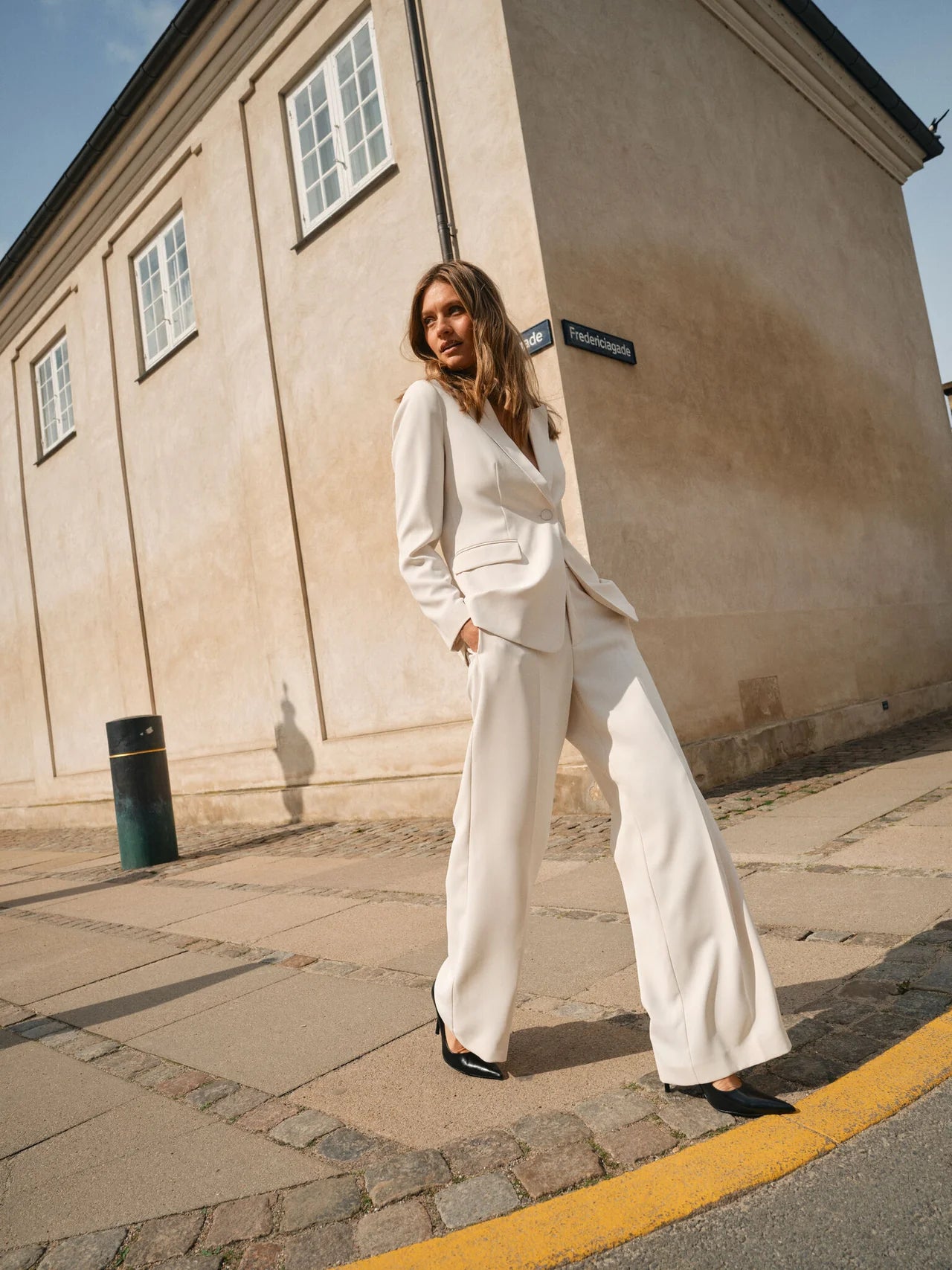 Elevate your wardrobe with the Mos Mosh Leya Miley Pant in Ecru. Designed with a mid to high-rise waist and a straight fit, these tailored pants offer flattering comfort and timeless style. The pressed creases and concealed zipper closure enhance their polished look. Pair them with a feminine blouse and matching blazer for a sophisticated outfit that transitions seamlessly from office to evening. Perfect for those who appreciate elegant versatility.