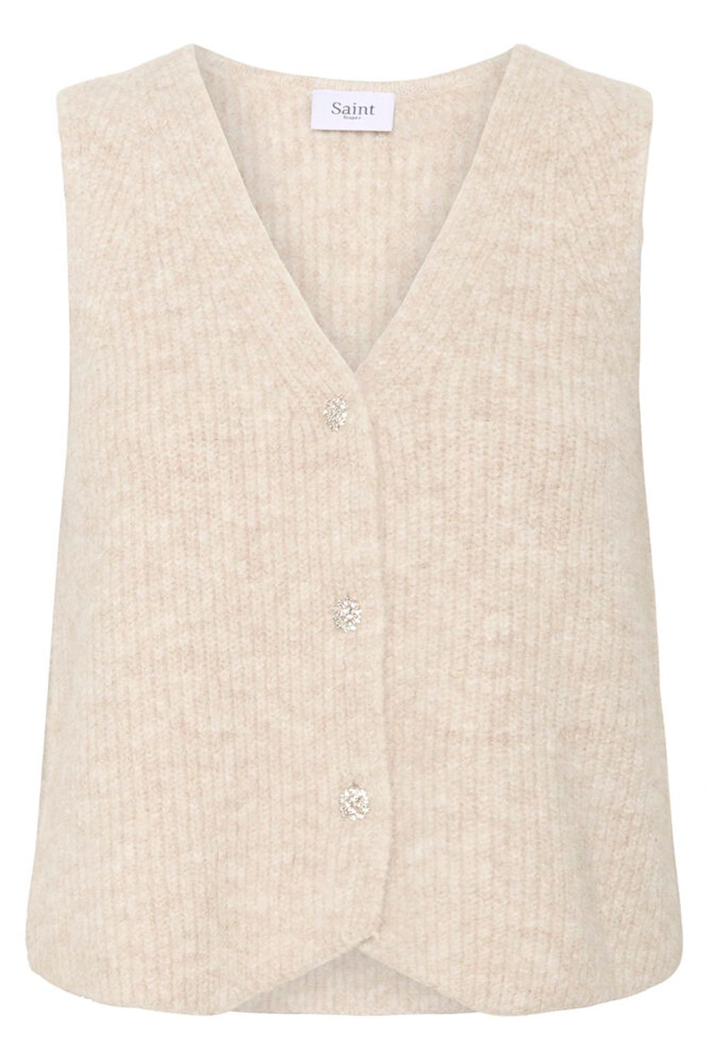 Elevate your style with the Saint Tropez Xenya Vest, a beautiful knit piece designed for effortless layering. Its delicate diamanté buttons add a touch of sparkle, making it perfect to pair with your favorite skirt for a chic, polished look. This versatile vest combines comfort and elegance, ideal for enhancing any outfit with subtle sophistication.