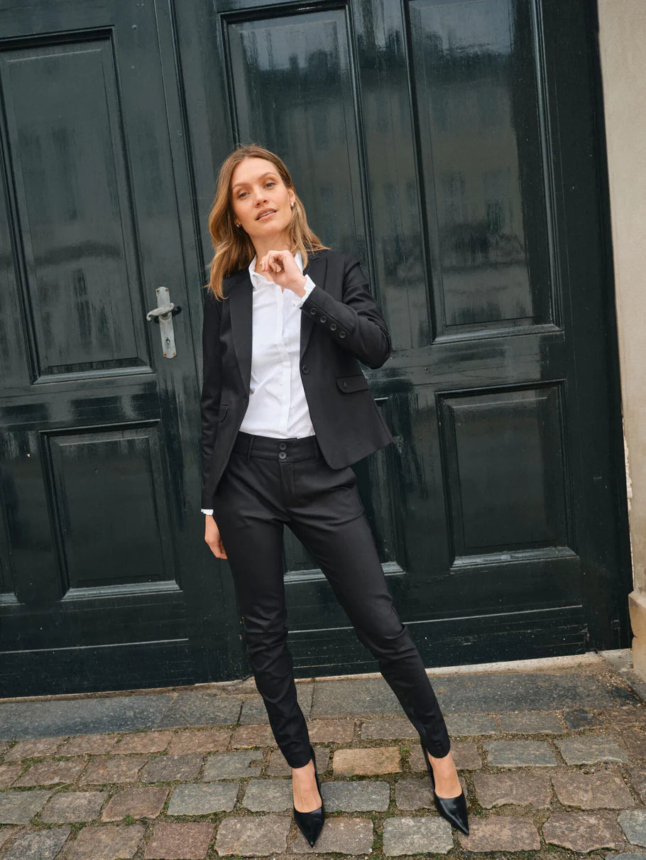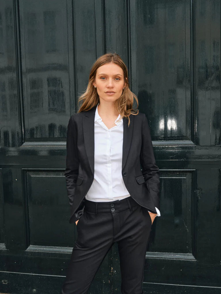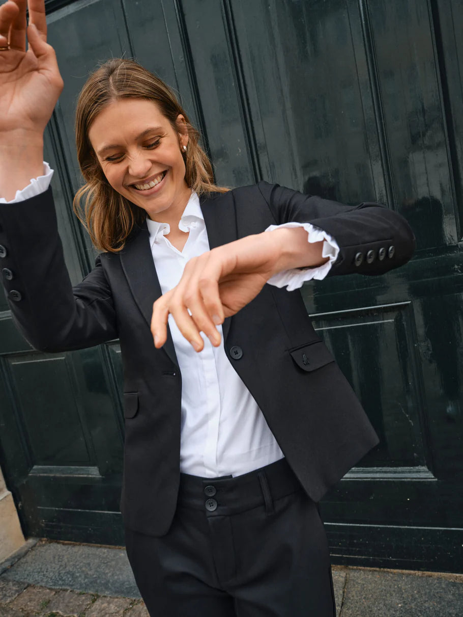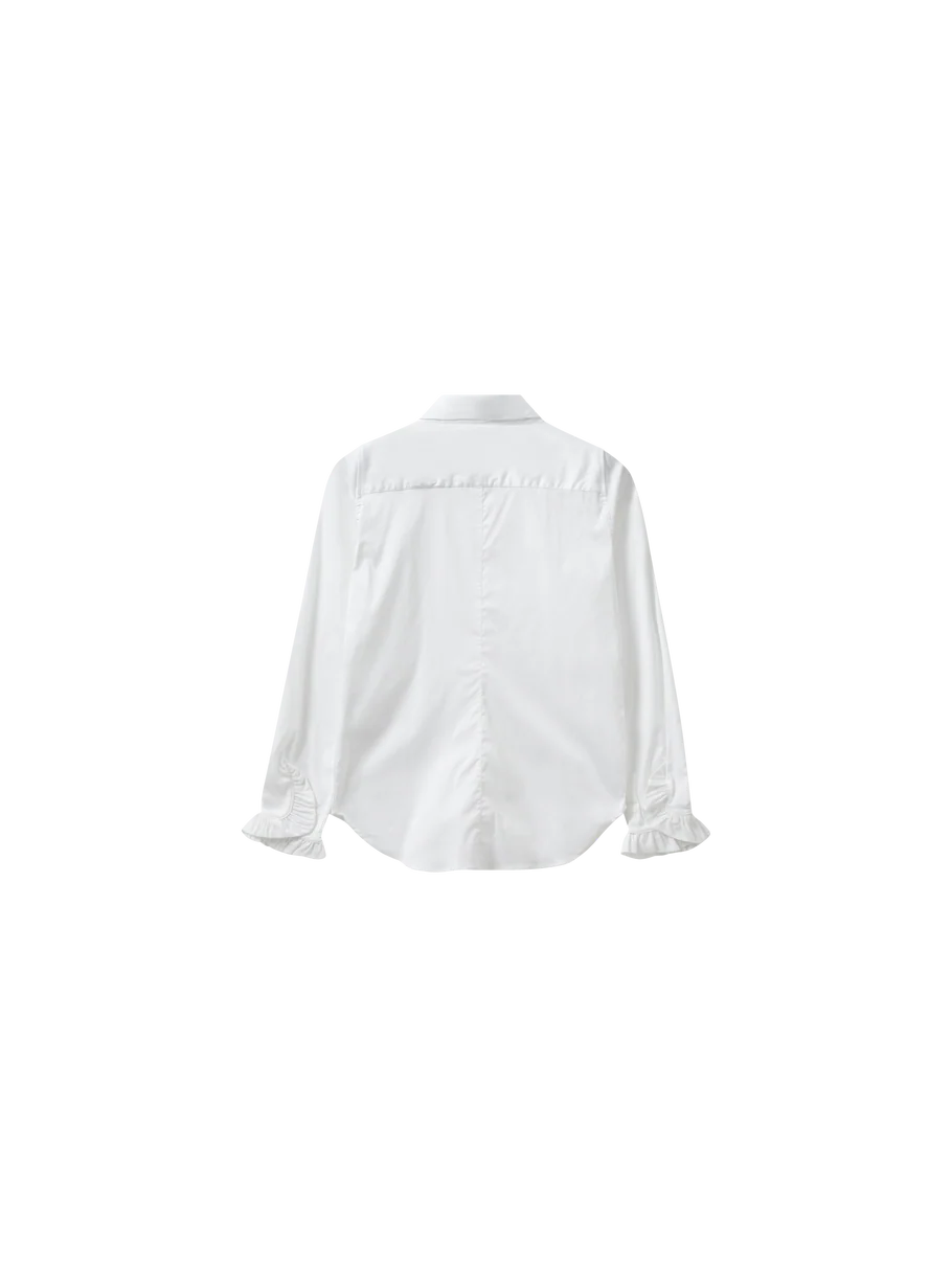 Elevate your wardrobe with the Mos Mosh Mattie Flip Shirt in White. Designed with a flattering slim fit and crafted from soft, stretchy fabric, this shirt offers both comfort and style. Its classic collar and button closure provide timeless appeal, while the feminine ruffled cuffs add a delicate, elegant touch. Perfect for layering under tailored pieces, it effortlessly enhances any outfit with a subtle, sophisticated flair. A versatile staple that brings a refined, feminine edge to your everyday look.