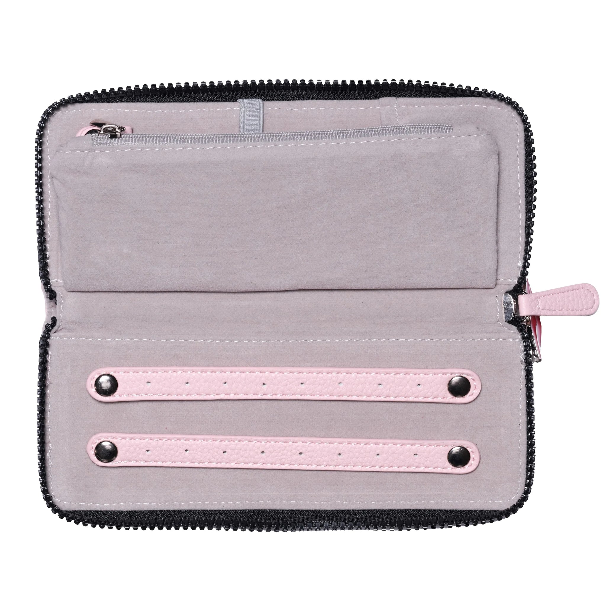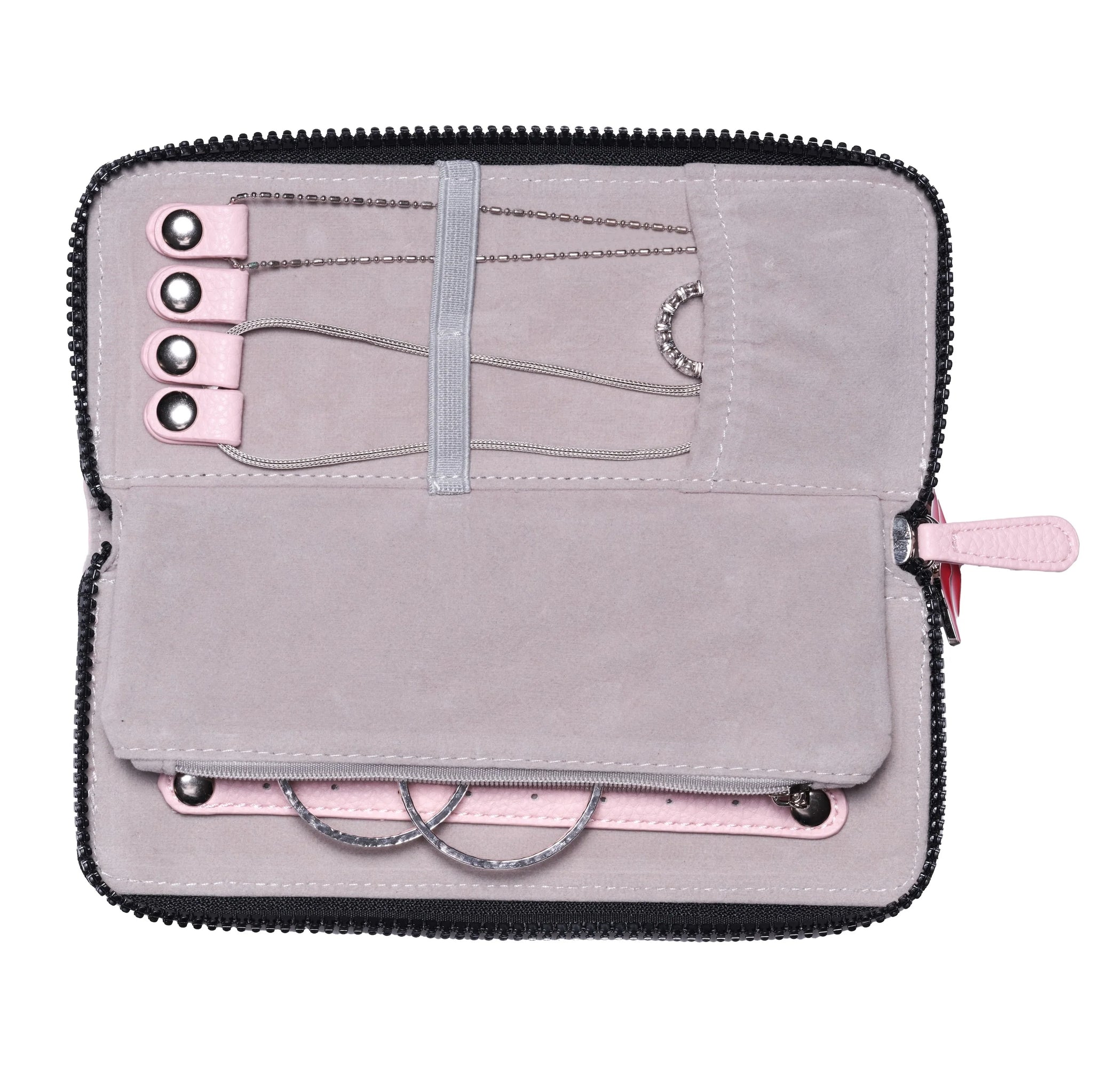 Designed with practicality in mind, it features multiple compartments to neatly hang necklaces, securely fasten earrings, and store rings, preventing tangles and scratches. Zipped areas offer additional storage for special keepsakes and other delicate items, making this wallet an essential for both daily use and travel.