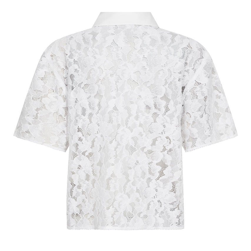 Elevate your everyday wardrobe with this delicate lace short sleeve shirt. Crafted from quality fabric, the intricate lace detailing adds a touch of elegance and femininity to any outfit. Perfect for layering or wearing solo, this versatile piece transitions seamlessly from casual days to evening occasions. The relaxed fit ensures comfort throughout the day, while the classic white tone pairs effortlessly with your existing pieces. An essential addition for those who appreciate refined, timeless style.