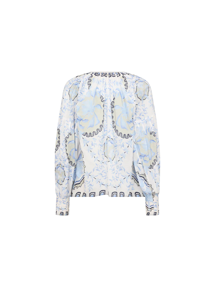 A romantic blouse adorned with a delicate orchid-inspired floral print in soft pastel tones. Designed in an oversized silhouette with a flattering V-neckline and buttoned cuffs, it captures a breezy, feminine charm. Crafted from 100% cotton for natural comfort - perfect for both casual and elevated styling.