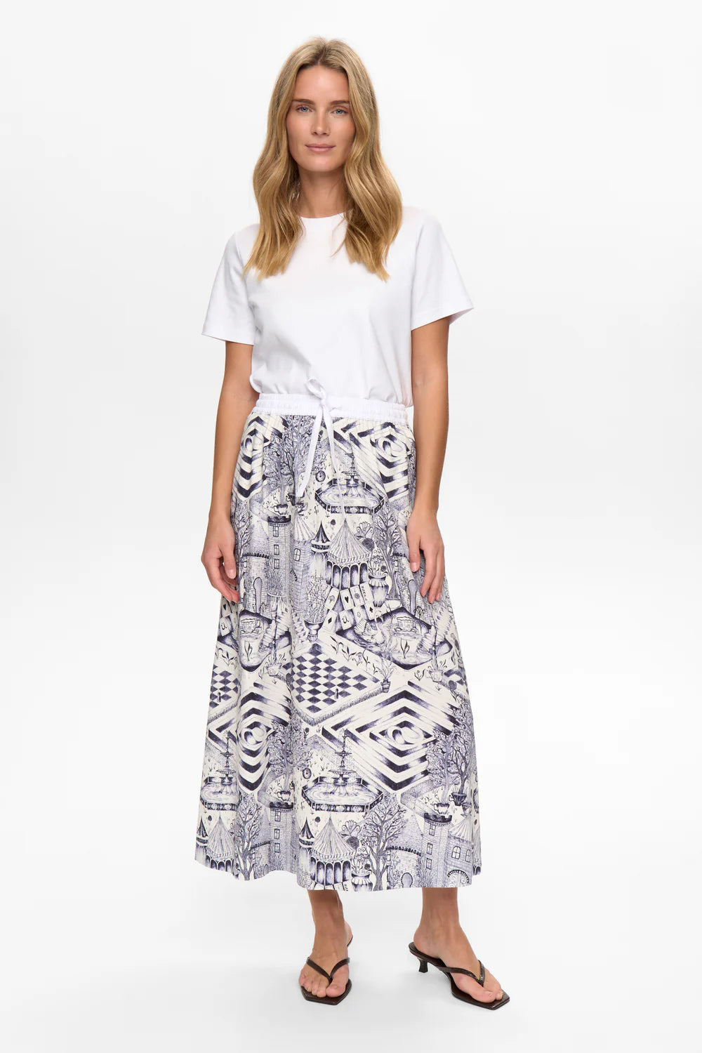 Elevate your everyday wardrobe with the Numph NuGardenia Skirt in Cloud Dancer. This stunning piece features a beautiful, unique print that instantly brightens your day and lifts your mood. The soft, versatile design pairs effortlessly with a crisp t-shirt or delicate blouse, creating a fresh, polished look for any occasion. Whether you're heading to the office or meeting friends, this skirt brings an instant dose of colour and personality to your style. Discover how a single piece can transform your entire outfit and boost your confidence.