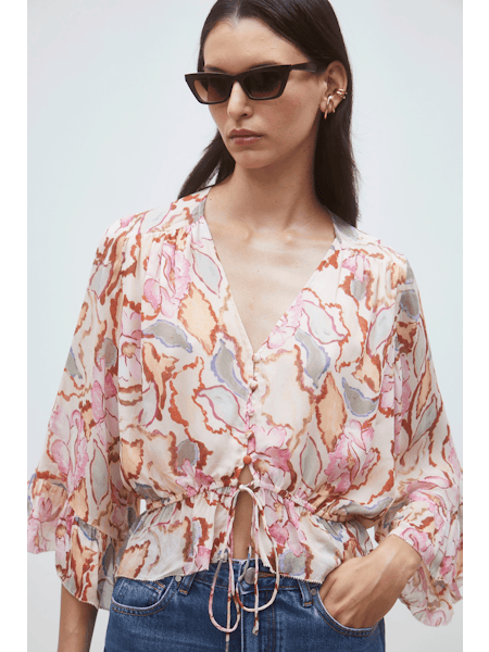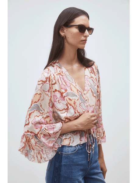 Effortless elegance meets everyday comfort in the Suncoo Lana Blouse. Crafted from luxuriously soft 100% viscose, this blush-toned piece drapes beautifully against the skin. The adjustable drawstring waist creates a flattering silhouette you can customize to your preference, making it perfect for layering or wearing solo. Lined with 100% polyester for added durability and comfort. A versatile wardrobe essential that transitions seamlessly from day to evening.