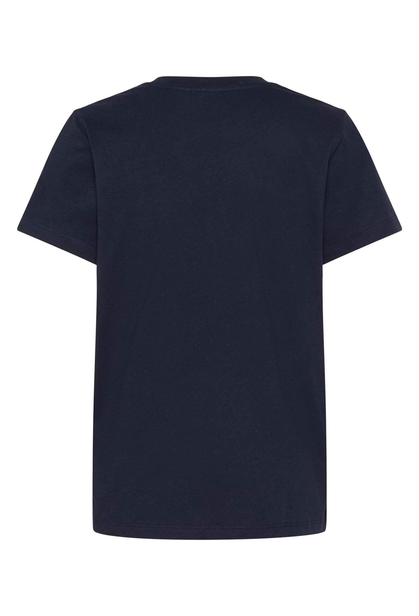 This t-shirt features a straight fit and a classic crew neckline. The design includes short sleeves and a soft, smooth finish. The front displays a prominent script detail across the chest.