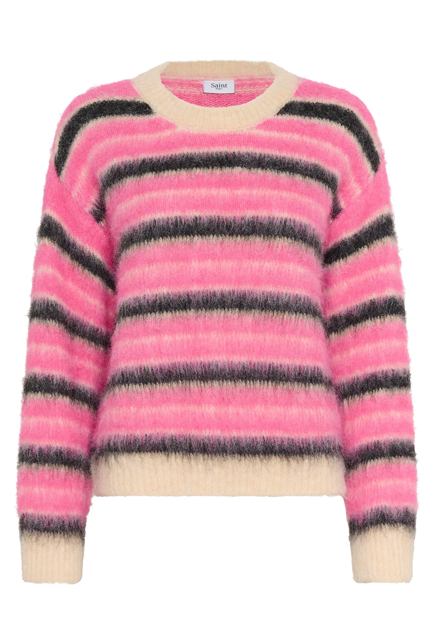 This striped sweater features a relaxed fit, soft texture, and classic crew neckline. Long sleeves and hip-length design offer versatile comfort for everyday wear, perfect for layering or styling alone for a casual look.
