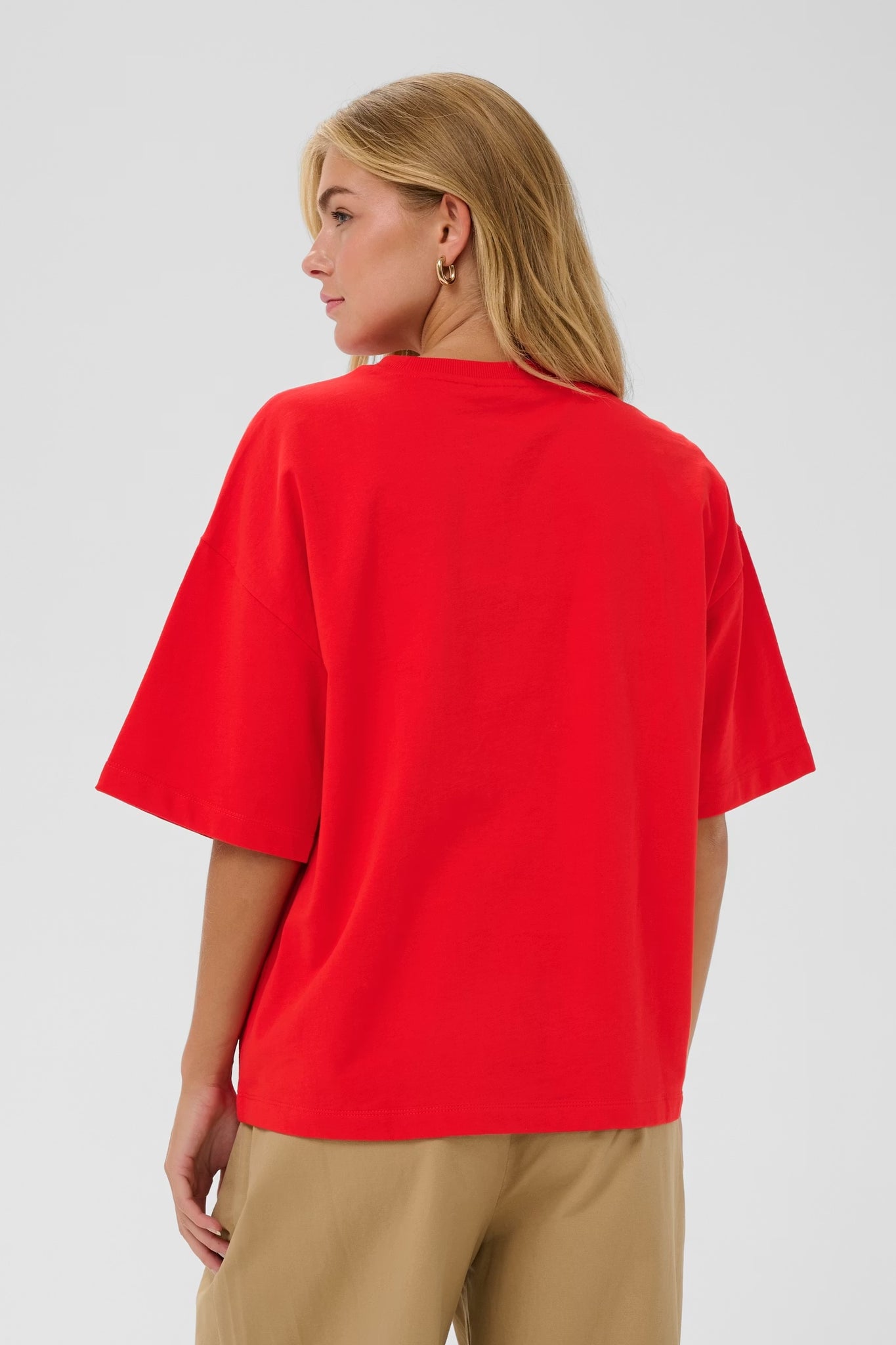 This oversized T-shirt/sweatshirt features a relaxed silhouette with wide, elbow-length sleeves and a classic crew neckline. The straight hem adds to its laid-back appearance, complemented by a textured central graphic. The cut offers a loose, boxy fit throughout.