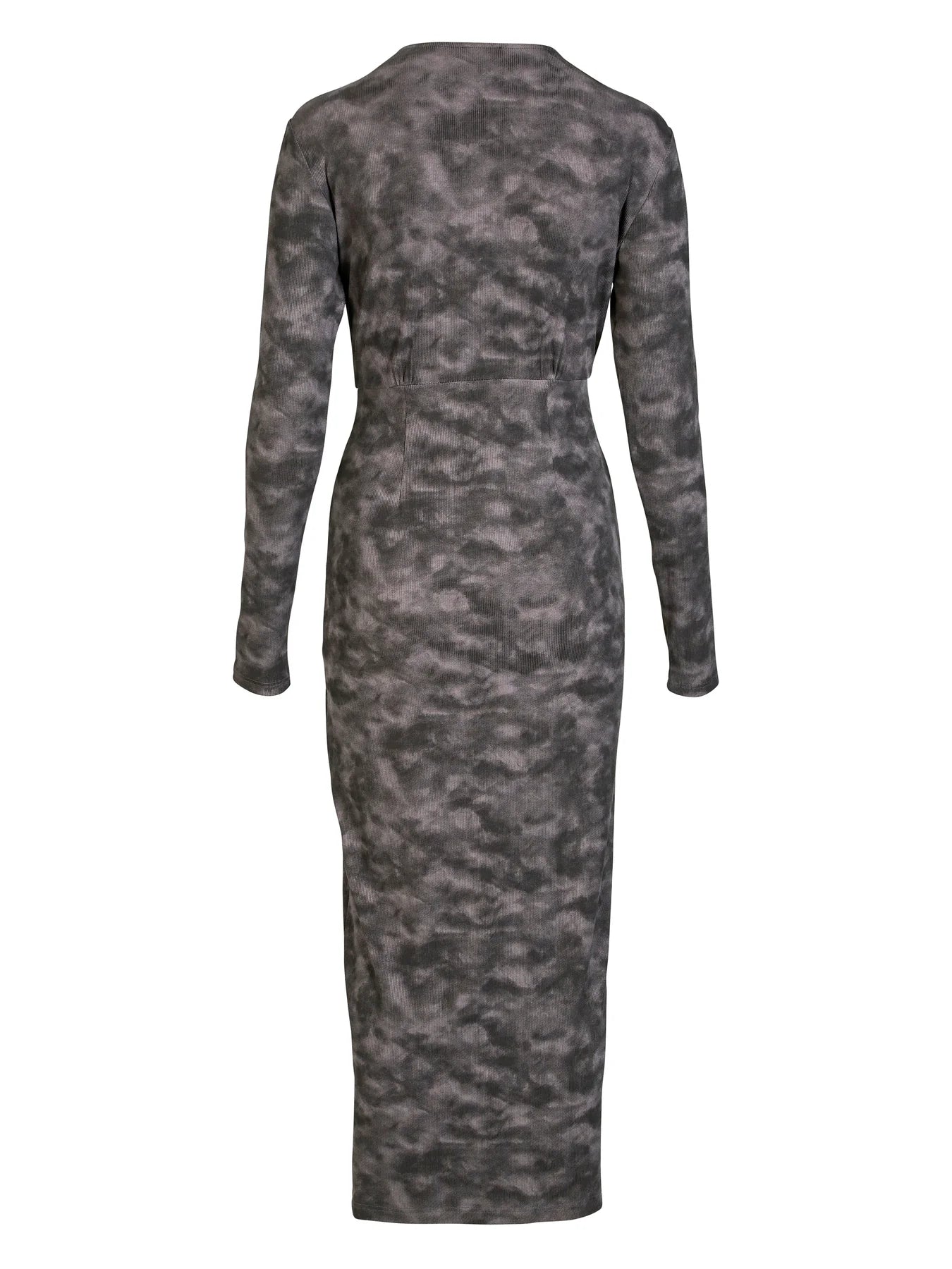 This elegant dress features a flattering wrap-around effect and a softly draped cut, giving it a feminine and shapely expression. The soft material embraces the body, while the long sleeves make it suitable for both day and evening wear. The subtle print adds depth and character to the simple design.