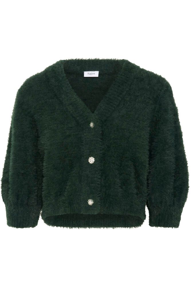 This Saint Tropez Banni Cardigan in a rich June Bug green features elegant 3/4 length sleeves, offering just the right amount of warmth for chillier days. Its versatile design combines comfort with style, making it an essential layering piece to brighten up your cold-weather wardrobe effortlessly.